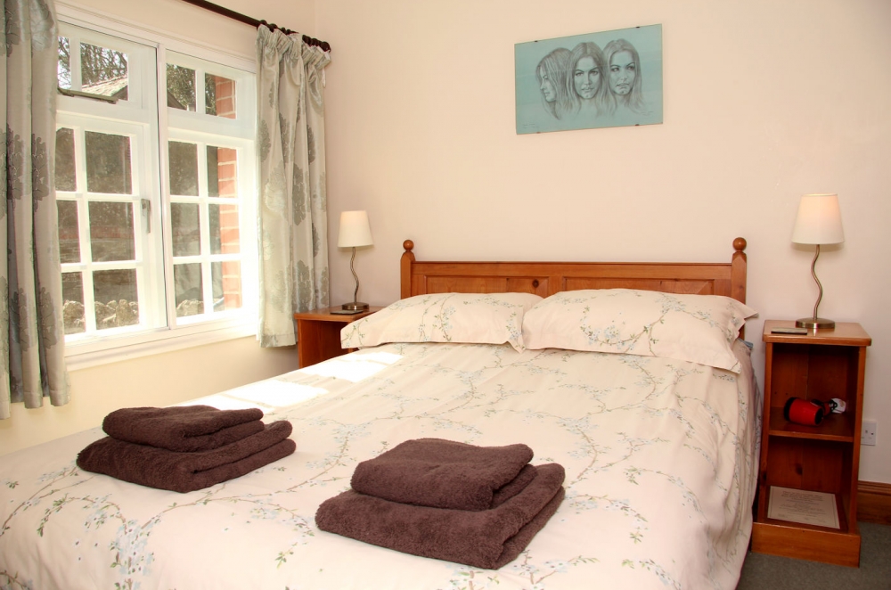 One bedroom with a double bed and a single bed. Sofa bed in lounge. Shower and bath. Garden.