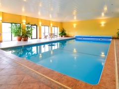 The indoor heated pool with gentle steps into the shallow end is bright and welcoming at all times of the year.