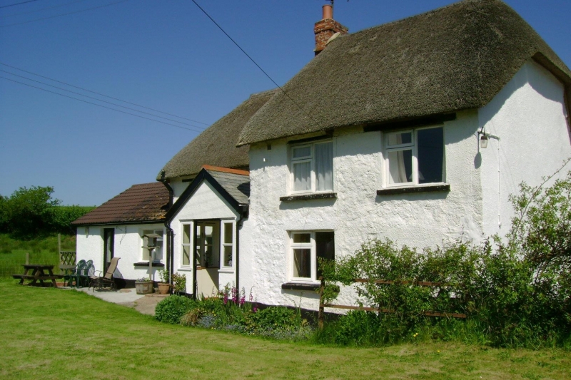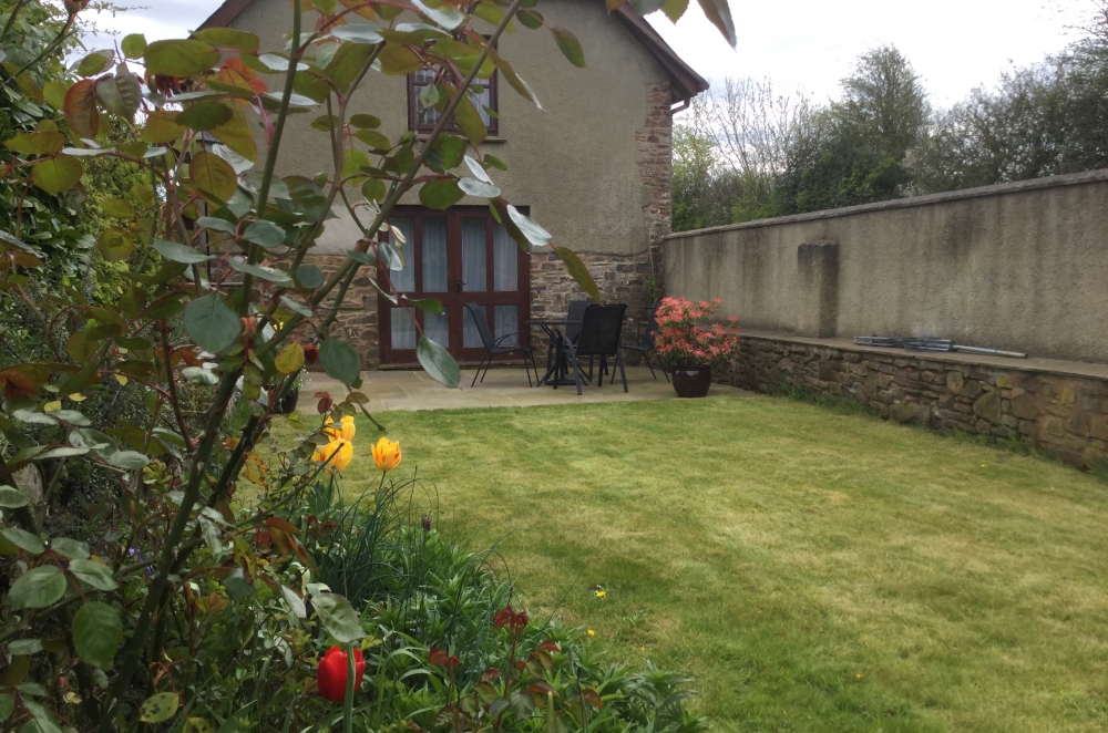 Detached but near our picturesque thatched farmhouse it has patio doors leading to a lawned garden for relaxing in and just listening to birdsong.