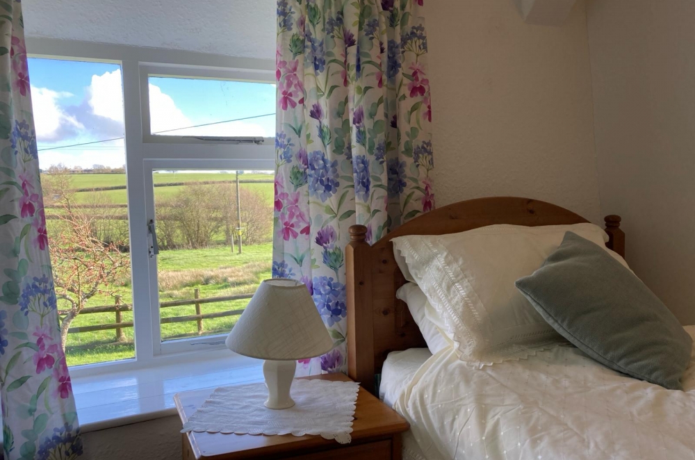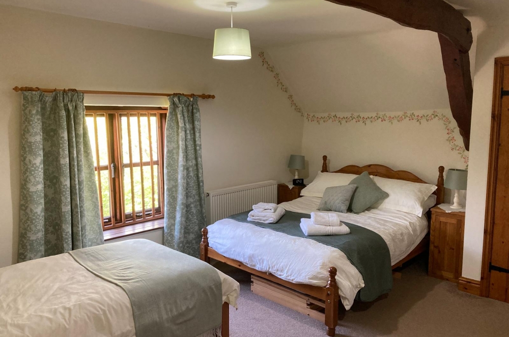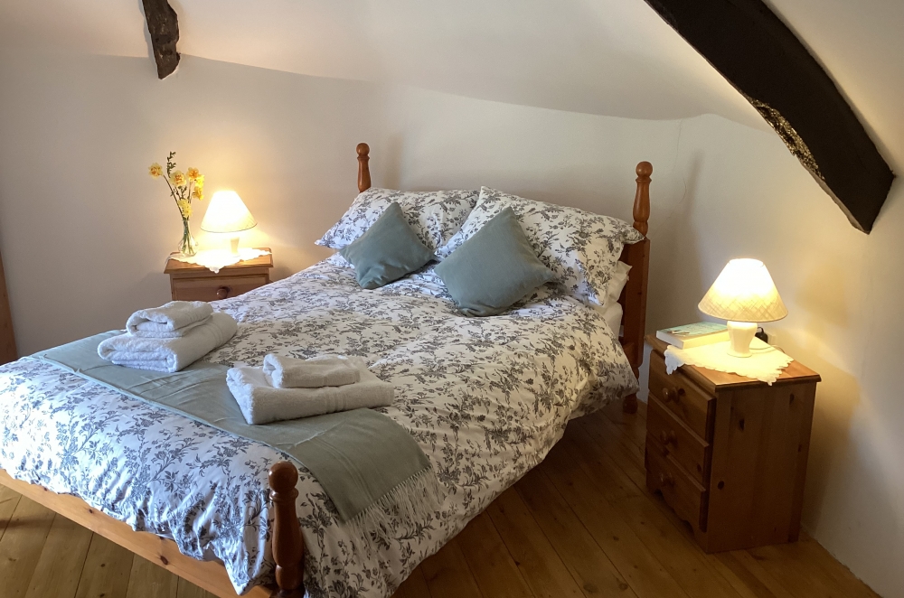Two bedrooms, one ensuite with beams. Sleeps up to 5 but cosy enough for just 2 people.