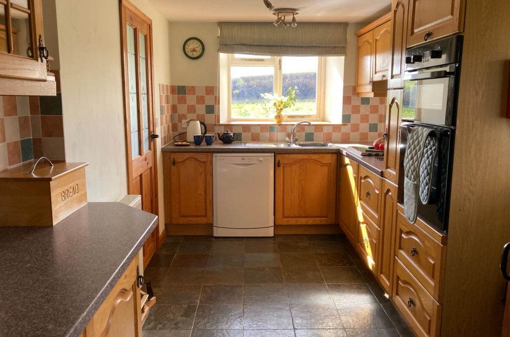 Large fitted kitchen with dining area. Sitting room with patio doors to the garden. Disabled wetroom(loo & shower) with wheeled shower chair located off the hall. Full oil central heating. Free Superfast WiFi