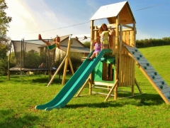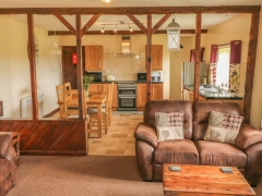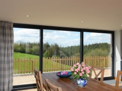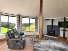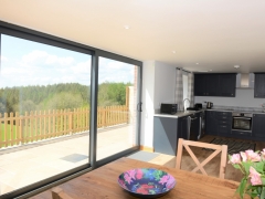 On the ground floor is a very large and comfortable living room with a high apex ceiling and large windows to enjoy the views from. It also includes a leather suite around a woodburner and dining suite for evening meals.