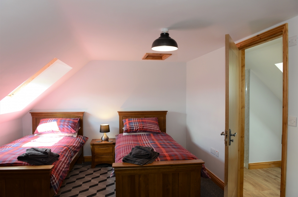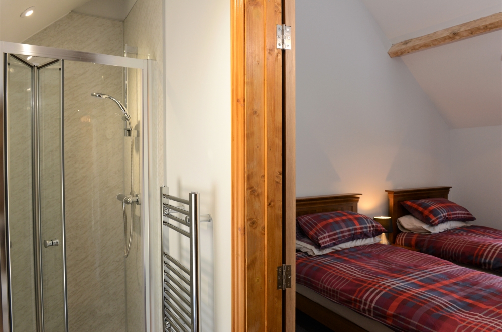 Woodcutters Cottage comfortably sleeps four with one double room and one twin room. Bathroom with walk in shower and bath. Up and downstairs toilets.