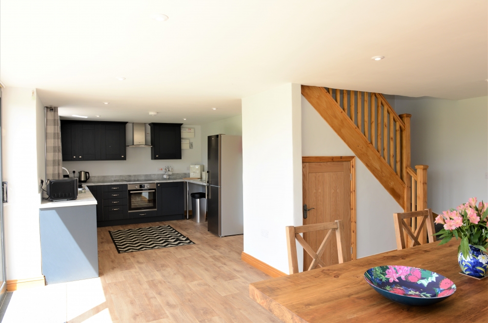 Our detached barn conversion with striking character, this family friendly accommodation has an upstairs lounge and kitchen to maximise the outstanding views.