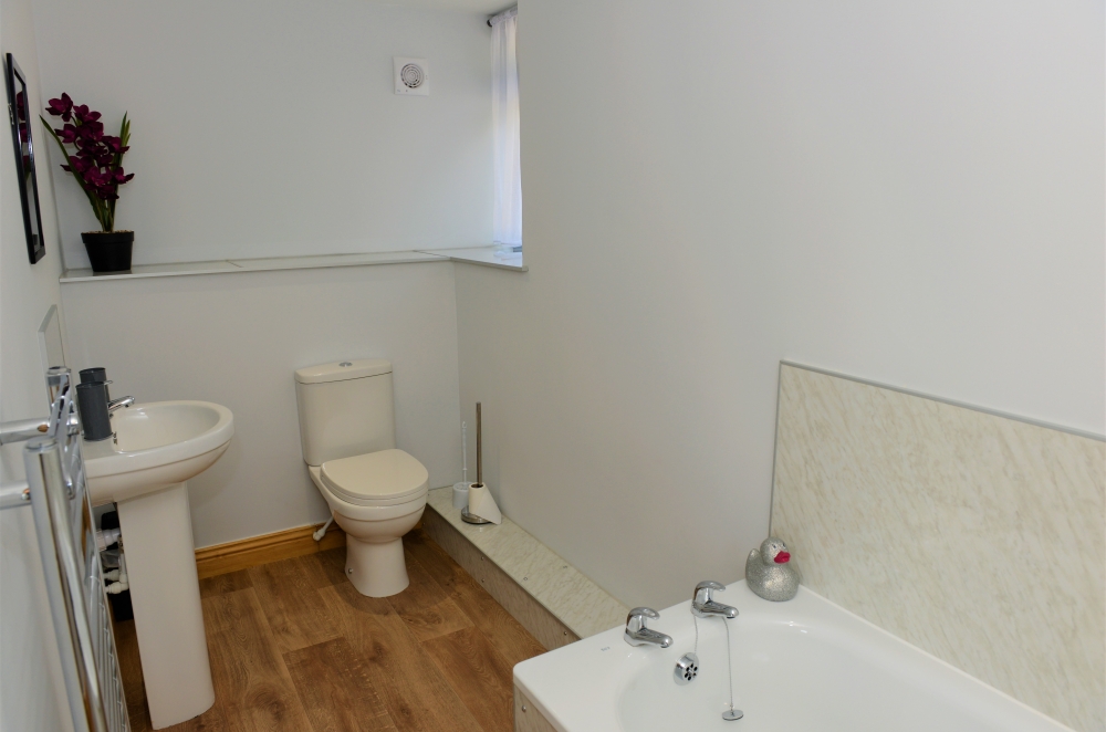 Also on the ground floor is a bathroom containing a bath, wash basin and a toilet