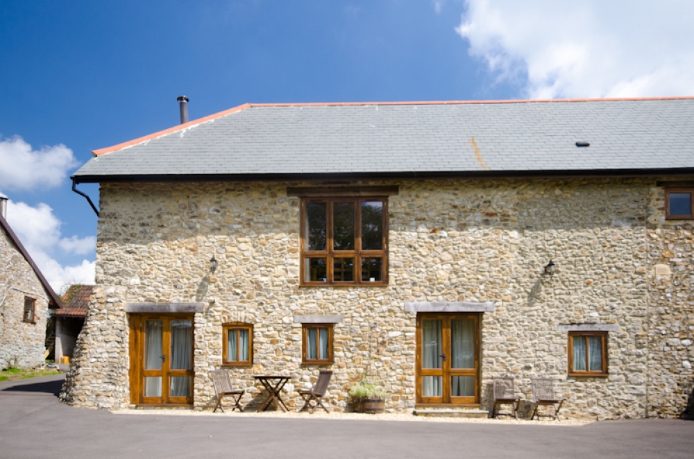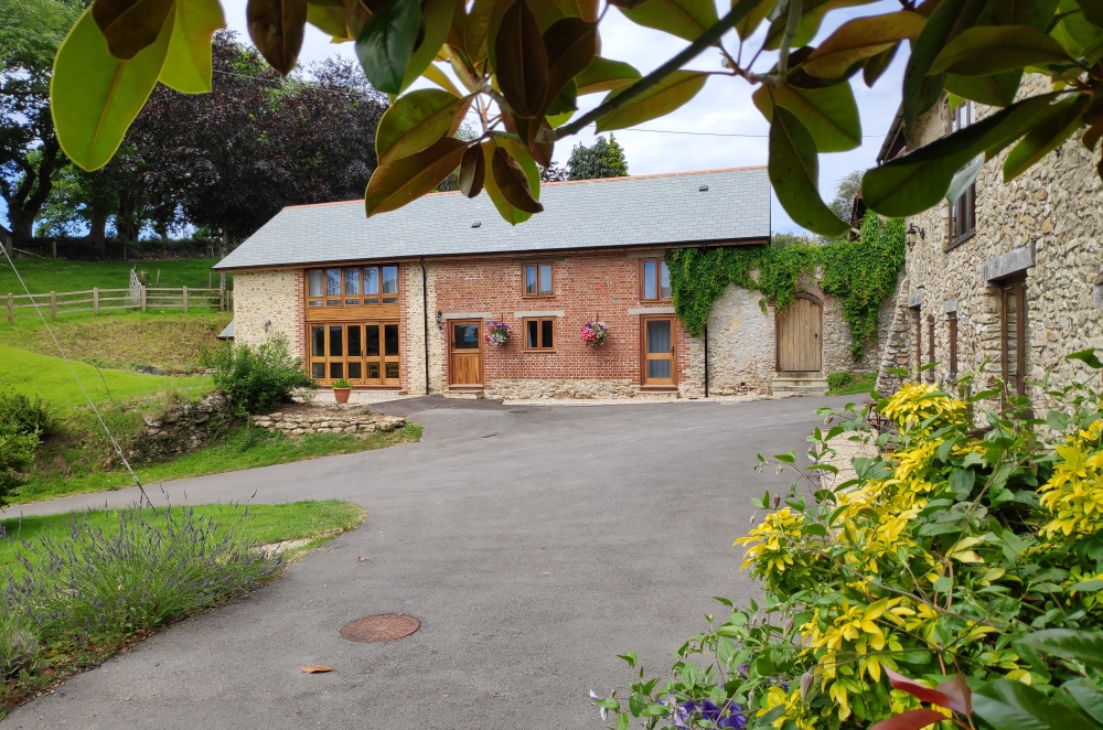 The Cider Press an upside down listed, high quality barn conversion, in quiet country setting. Close to the coast, 15 minute to Lyme Regis. Footpath walks from your door, green lanes and fields to Village/ Pub in Dalwood. It provides luxury holiday accommodation for three couples in three double rooms, can also make two twin rooms and one double. A wet room en suite and a family bathroom. Underfloor heating throughout. Spacious living/dinning/kitchen, table will seat 6-10, well equipped also ulility. Oak flooring, large windows with country views. A wood burner. Sunny sitting out areas and garden. Much free parking. Children and well behaved dogs are welcome. Graded 4 star Gold award