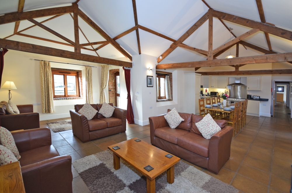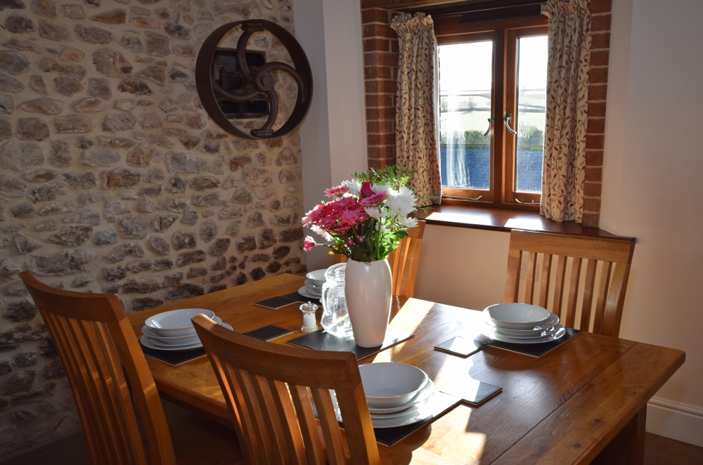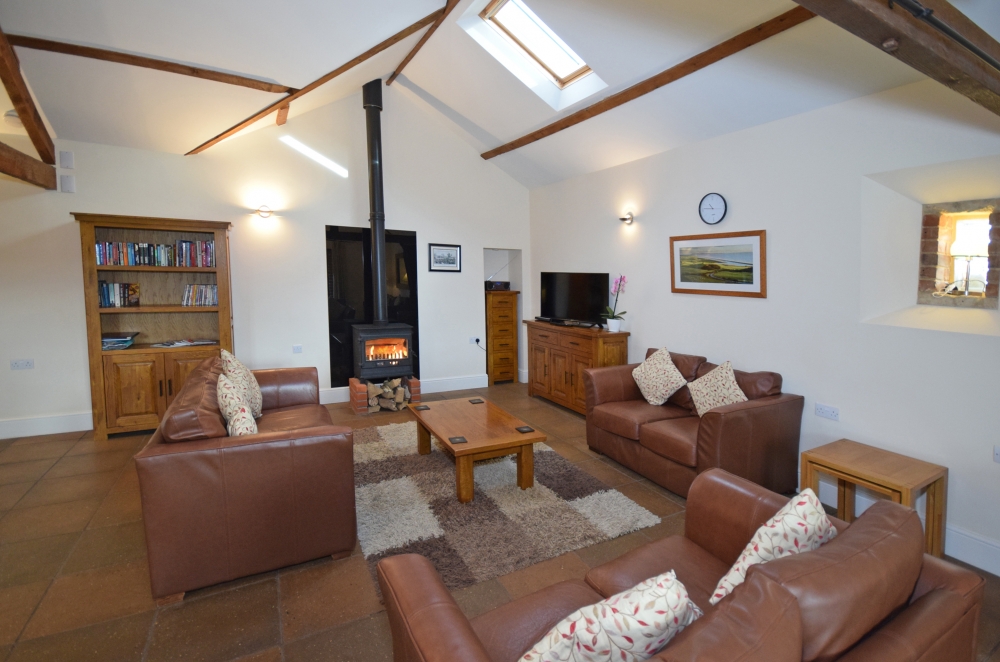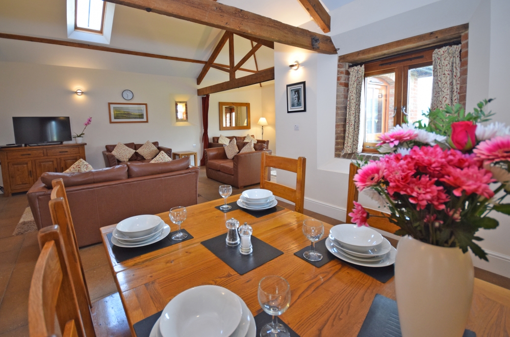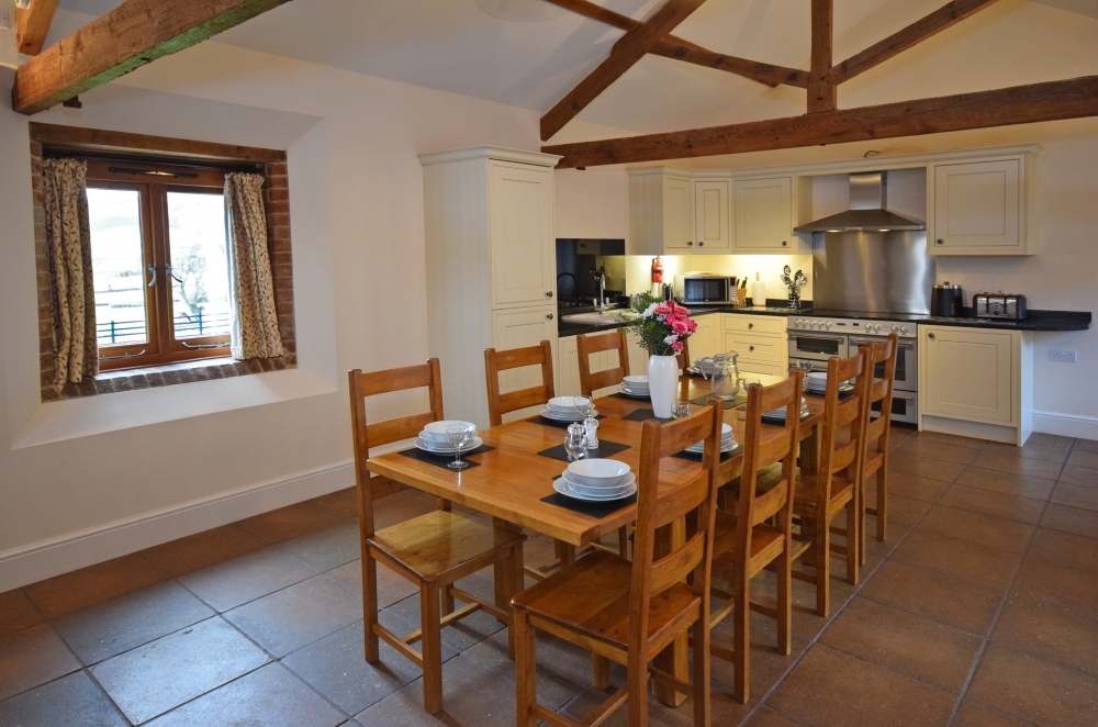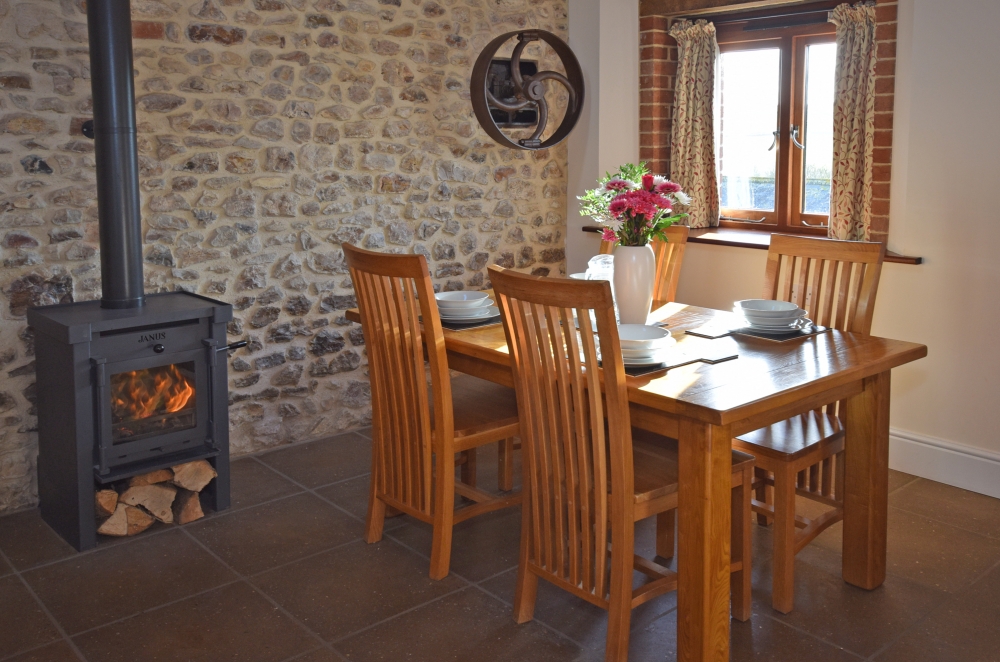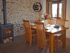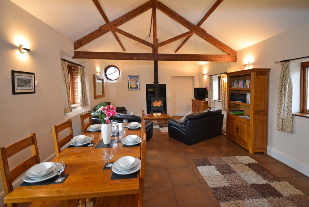 The Wheel House has a spacious, open-plan, well-equipped Kitchen/Dining/Lounge area, including an double electric oven and hob, microwave oven, kettle, full upright size fridge/freezer, toaster, dishwasher and a washer/dryer. The Lounge has a log burner, and the banquet table.