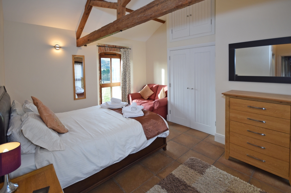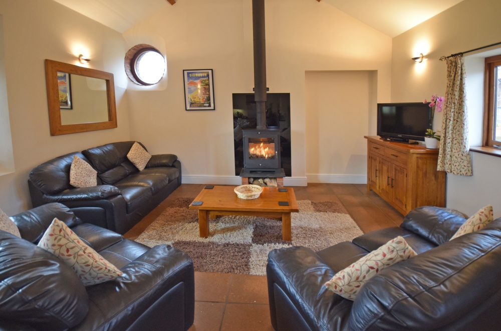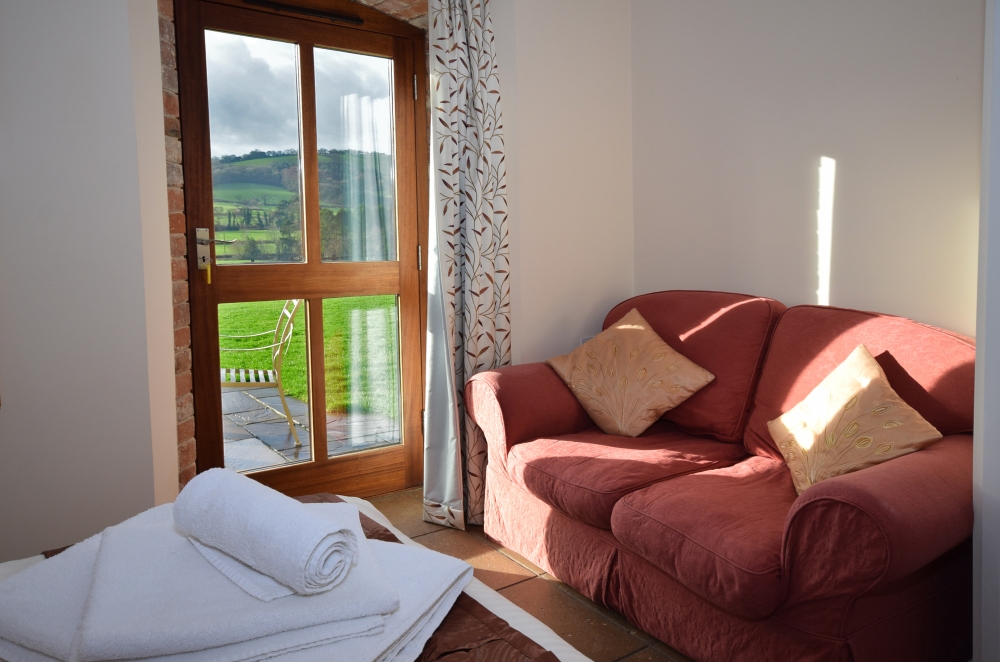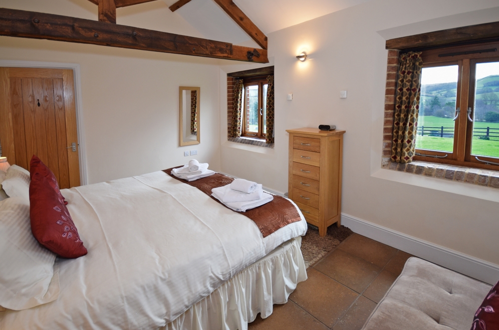 This cottage looks out over miles of rolling countryside. The Leat House has been converted using the original beams with vaulted ceilings. It is spacious, sleeping up to 4 + 1 plus a cot in its two en-suite bedrooms. The first has a super king bed which can be made into a twin and there is a sofa bed. The en-suite family bathroom has a shower over the bath. The other bedroom is a king-size bed and the en-suite is a shower. The Leat House has a spacious, open-plan, well-equipped Kitchen/Dining/Lounge area, including an electric oven and hob, microwave oven, kettle, fridge with freezer department, in the spacious lounge is a log burner. It has under floor heating and its own patio.