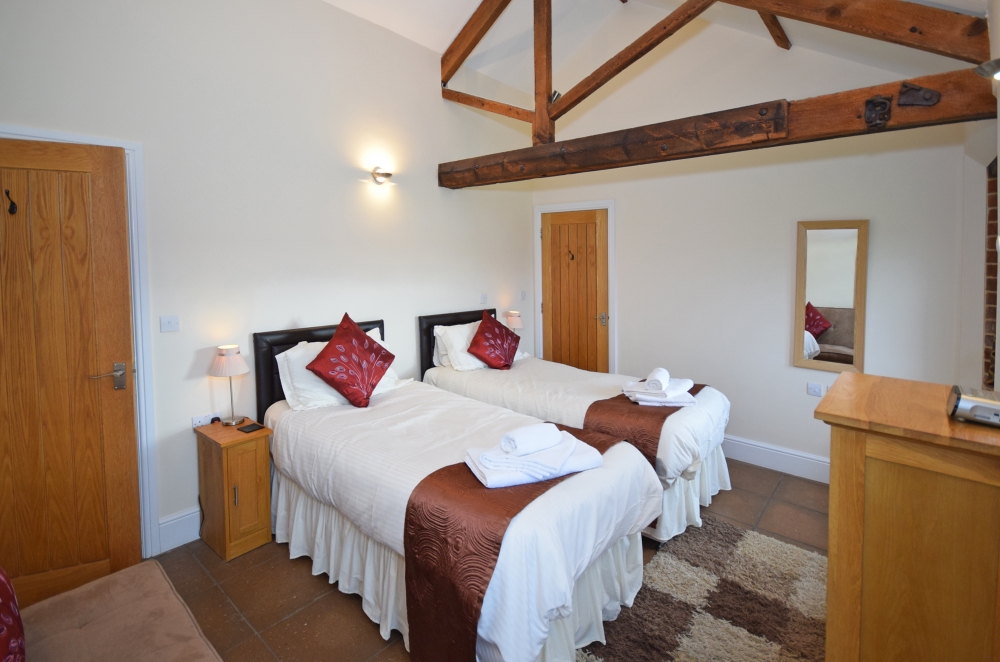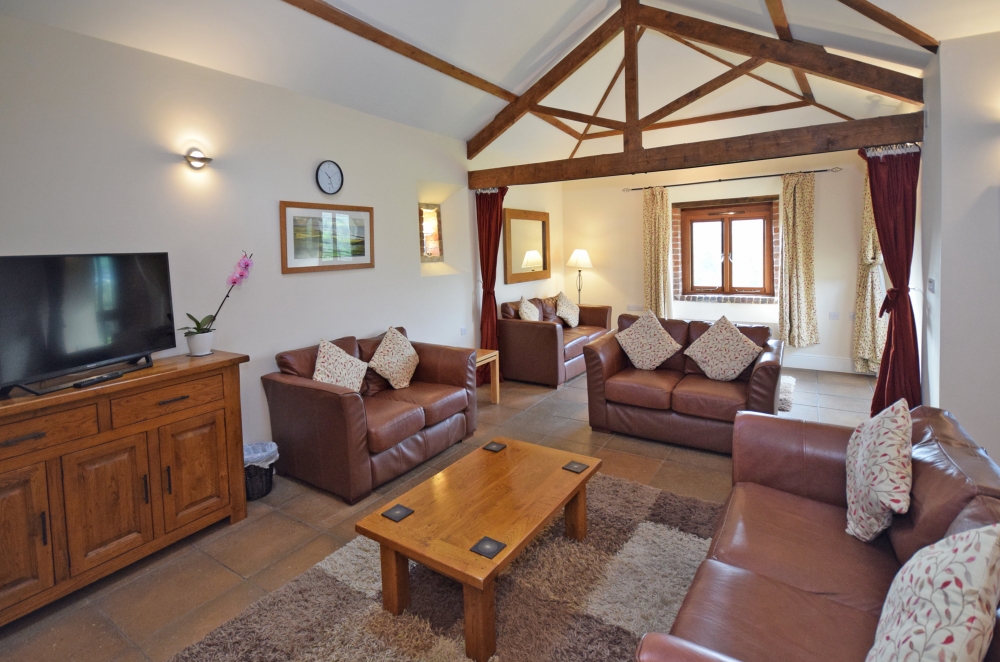 This thoughtfully converted, spacious one level cottage has a vista of open farm land from every room. Sleeping up to 8 people plus a cot, the cottage has three bedrooms. One is a King Size bedroom with a shower en-suite. The second bedroom double bed and a shower en-suite. The third bedroom is a twin and there is a family bathroom off the hallway. There is a double sofa bed in its own curtained-off area of the lounge.
