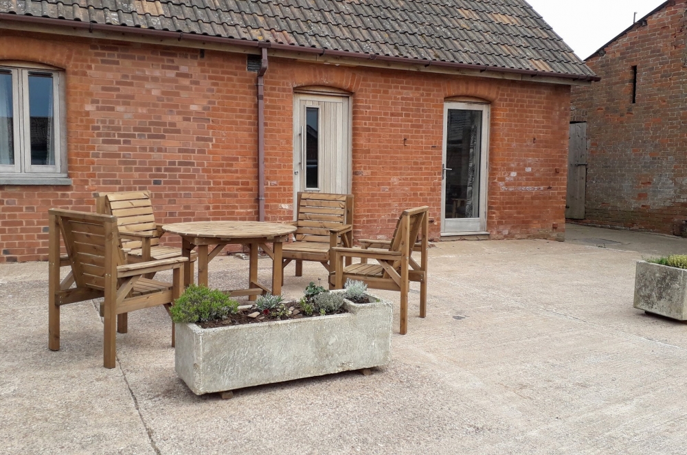 We have two apartments sleeping four people (The Parlour and The Roost) and two apartments sleeping two adults (The Honeypot and The Dairy). Each apartment has one king bed (The Dairy has a double bed), with The Parlour and The Roost also having twin bed rooms. Each apartment has an ensuite or private bathroom. The apartments also include lounge areas, full facility kitchens, dining areas and a courtyard with table and chairs (or picnic bench). Each apartment has been carefully renovated, with exposed beams and other cottage-style features.