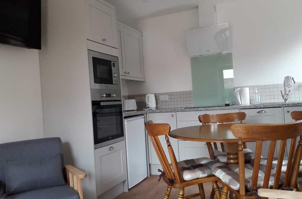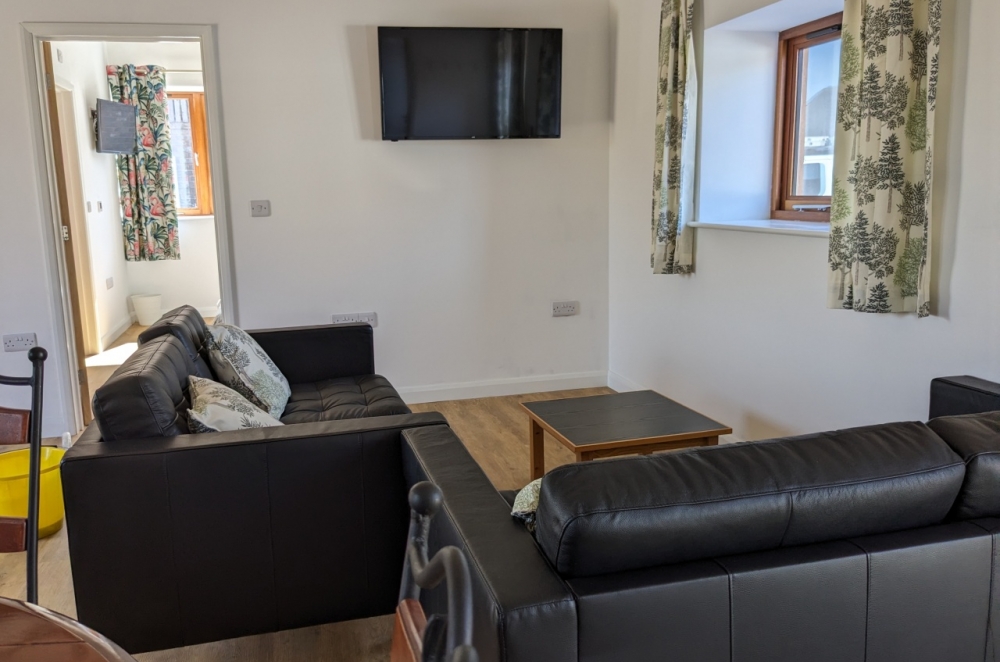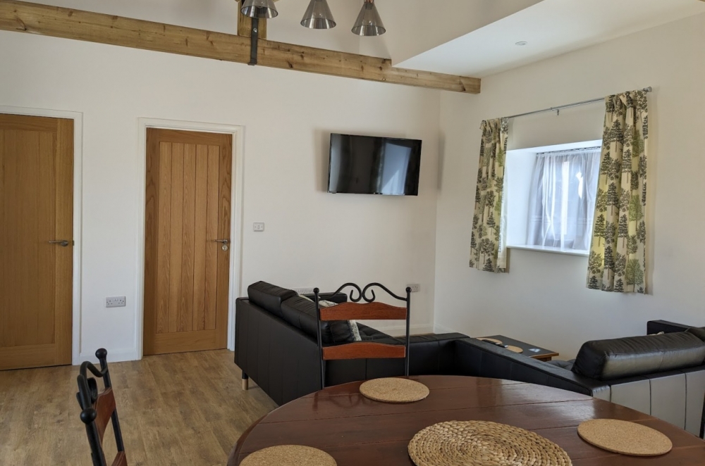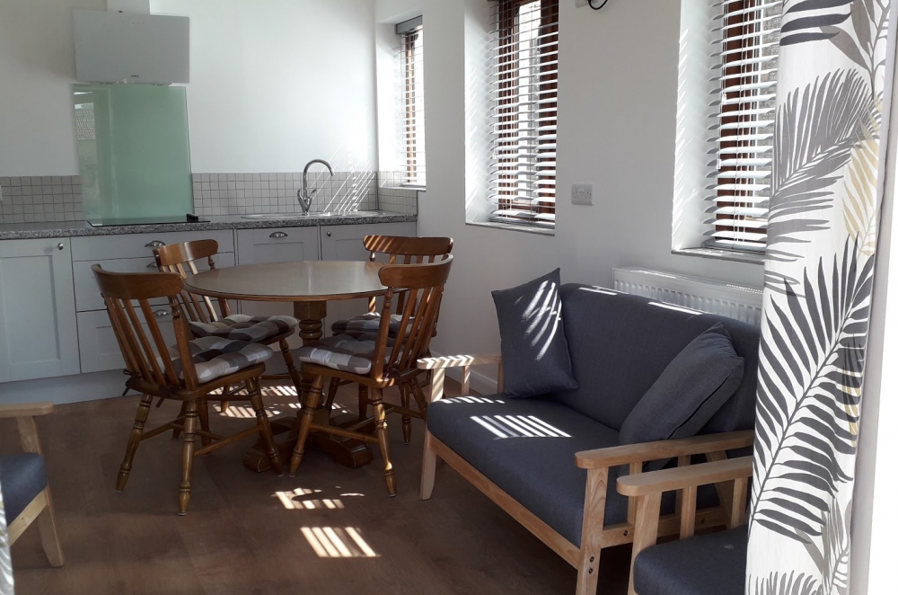 The Parlour is a self contained apartment. The entrance opens into a spacious open planned living room with beautiful exposed beams. The kitchen and dining area is well equipped with a lounge zoned off with comfy sofas and a large television. The king bedroom and twin bed room are on the ground floor, with both having generous ensuite shower rooms. Wifi included. The Parlour includes a private fenced courtyard at the rear, with a courtyard area in front for al fresco eating, plenty of car parking and facilities to store bicycles. The Parlour is an excellent base to explore the beautiful Devon countryside and the Jurassic Coast. Dogs are welcome in The Parlour - please call to confirm.