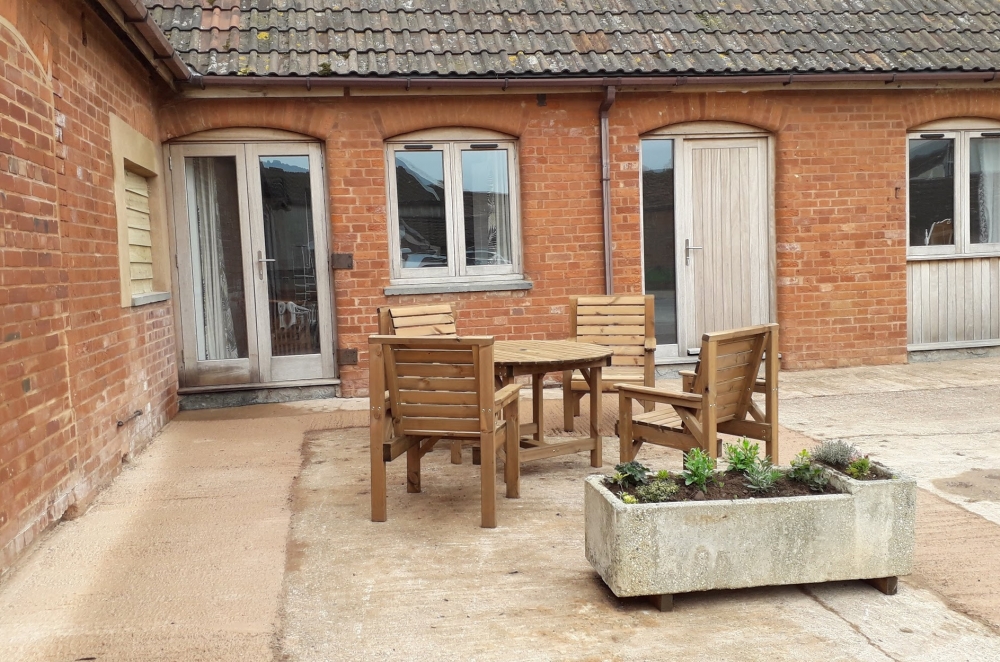 The Dairy is a self-contained apartment with a comfortable double bed, shower room, kitchen, dining and lounge areas. The lounge includes a flat screen television and sofa. Wifi included. In the courtyard area there is a picnic table for al fresco eating, plenty of free car parking and facilities to store bicycles. The Dairy is an excellent base to explore beautiful East Devon countryside and the spectacular UNESCO Jurassic Coast. Courtbrook Farm is close to Exeter (two minutes off the M5 at junction 30), Topsham and Sidmouth. Exeter Chiefs Rugby club is less than one mile away, with the fantastic Exe Estuary Cycle Trail within easy reach.