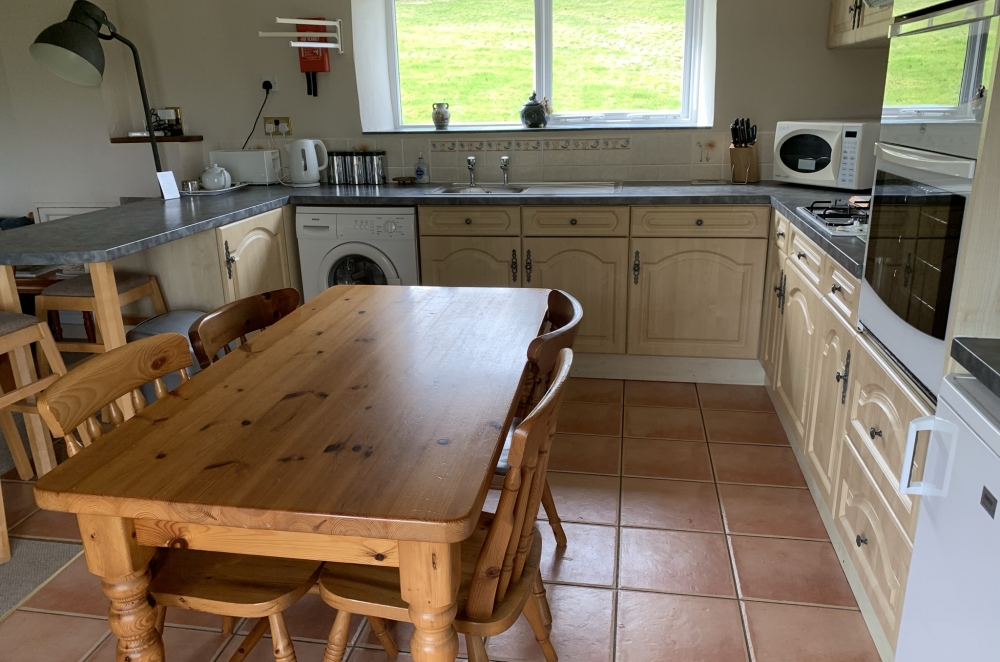 Upstairs, the are 2 bedrooms, one double and one with 2 single beds all with electric blankets. Each has its own en-suite shower, WC and wash-basin. We supply all bedding and towels. Also available for your use is a travel cot/bed cot, highchair and baby bath.