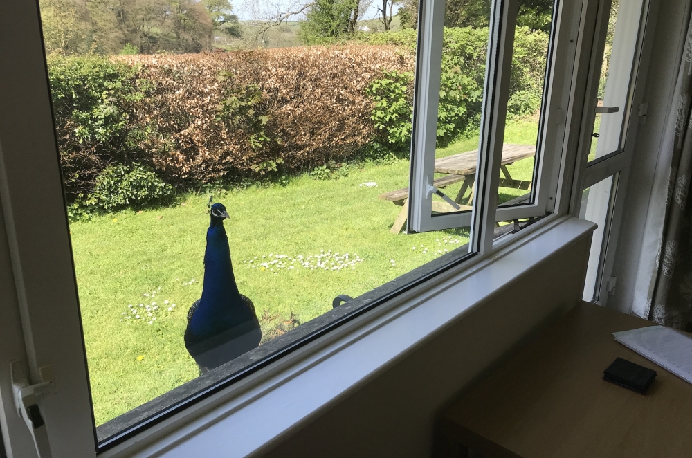 There is a large shared lawn, used by wildlife in the term time and ball games in the school holidays. Your windows directly overlook this on one side and you look into the woods on the other.