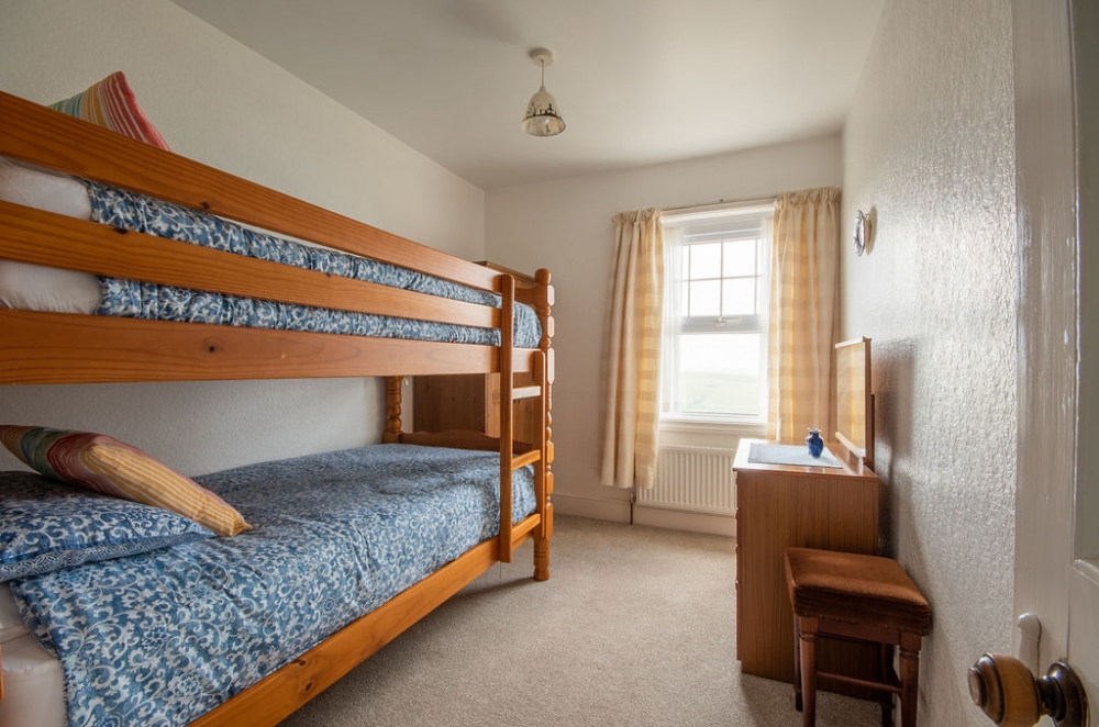 There is another double room with a wash basin. The third bedroom has bunk beds.
