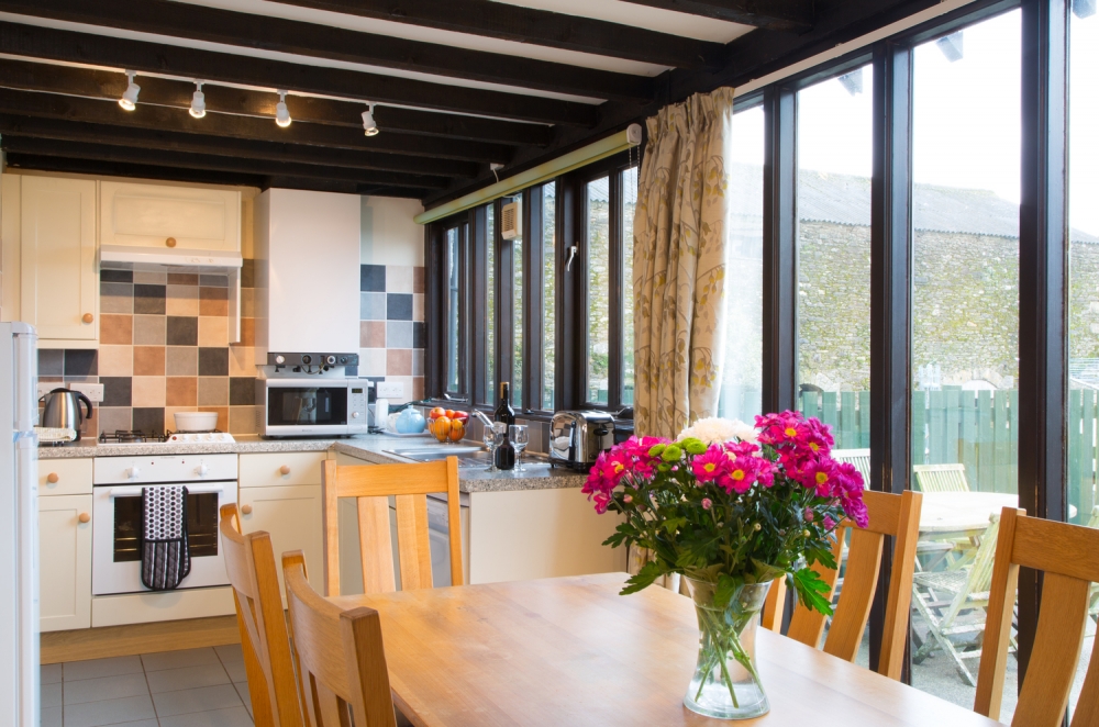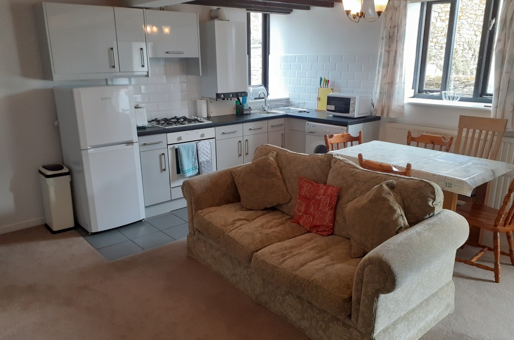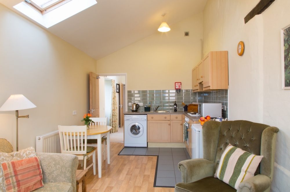 Calmady Cottage is the end cottage of three converted barns. It’s nearly 25 years since the cows were last milked in the parlour where Calmady Cottage now sits. The cottage hasn’t lost any of it’s character though. It’s a cosy space with flexible accommodation. Downstairs there’s an open plan kitchen, sitting and dining area with a double sofa bed. The kitchen is well equipped including a large fridge freezer, oven and microwave. Upstairs is a spacious and airy double room as well as a single room and family bathroom.